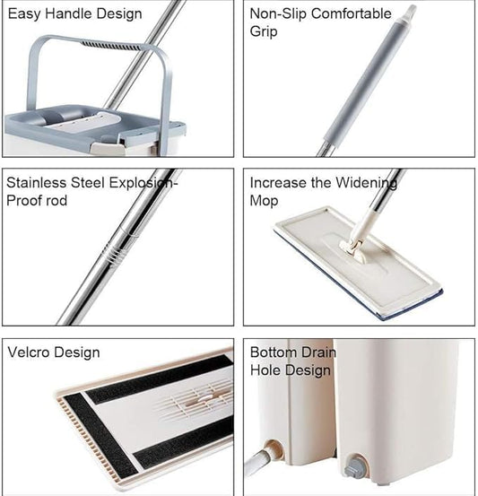 New Unique Microfiber Slim Scratch Cleaning Squeeze Mop with Bucket and 2 Refills Smart Sleek Compact Size Mop, Stainless Handlee Laundry Scent Booster